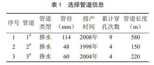 選擇穿孔嚴重、施工方便及減少地企糾紛的管段,見(jiàn)表 1。