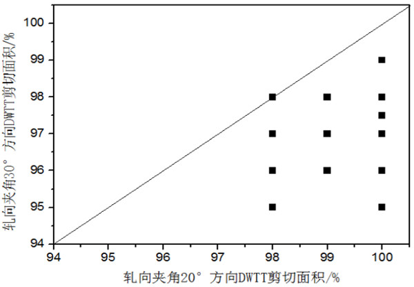 圖 5 熱軋板卷20°和30°位置的DWTT結果對比