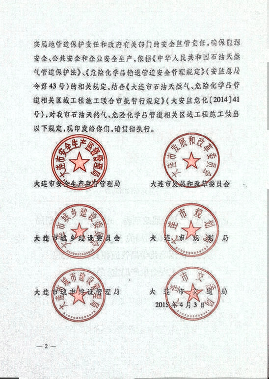 大連市石油天然氣、危險化學(xué)品管道相關(guān)區域工程施工安全生產(chǎn)規定