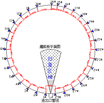 圖5 聲發(fā)射罐底檢測圖示