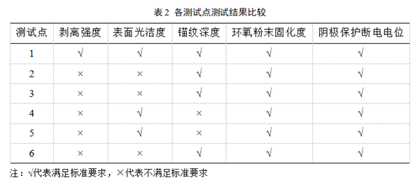 圖1 各測試點(diǎn)防腐層剝離強度