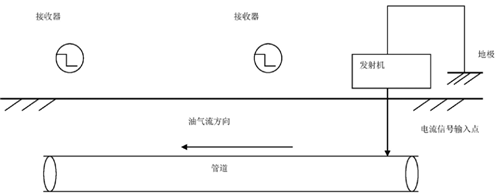 PCM檢測原理見(jiàn)圖1。電流信號加載在加油栓上,地極接在與土壤接觸的機場(chǎng)燈桿上。對于同一條管道,在管徑、材質(zhì)、土壤環(huán)境不變的情況下,電流在沿管道傳送的過(guò)程中逐漸衰減變化與管道防腐層的絕緣電阻率有關(guān),電流信號在傳播過(guò)程中呈指數規律緩慢衰減,表明防腐層絕緣性較好;反之,當防腐層存在缺陷時(shí),電流就會(huì )加速衰減,表明防腐層品質(zhì)較差。