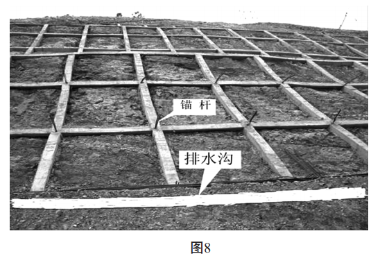 根據現場(chǎng)勘查的土層性質(zhì), 為了防止坡面的進(jìn)一步滑移, 需設置混凝土方格網(wǎng)植被護坡(見(jiàn)圖 8、 圖 9)