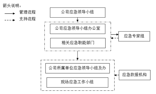 符合以下條件之一時(shí),公司應急領(lǐng)導小組將啟動(dòng)應急響應程序:發(fā)生Ⅰ、Ⅱ級突發(fā)事件;發(fā)生Ⅲ級突發(fā)事件,所屬單位請求給予支援或幫助;受所在國當地政府或相關(guān)方應急聯(lián)動(dòng)要求。