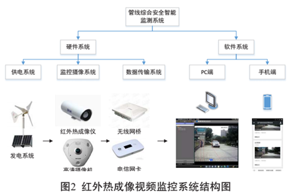 紅外探測器利用了物體與背景環(huán)境的輻射差異及景物本身各部分輻射的差異,熱圖像能夠呈現景物各部分的輻射起伏,從而能顯示出景物的特征。采用這一視頻監控系統,需要在現有視頻監控設備基礎上加裝紅外熱成像鏡頭等部件。紅外熱成像視頻監控系統結構如圖2所示。該系統單日需要電量1623WH。