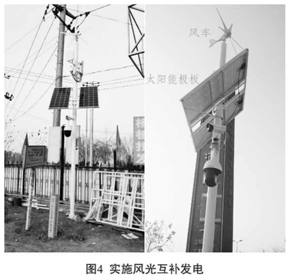 風(fēng)光互補系統每天最大提供電量大于等于1623WH,滿(mǎn)足系統用電需求的風(fēng)機日發(fā)電量330WH,F場(chǎng)安裝改造如圖4所示。