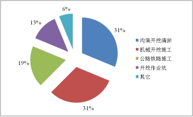 圖3 第三方施工損傷光纜事故類(lèi)型比例