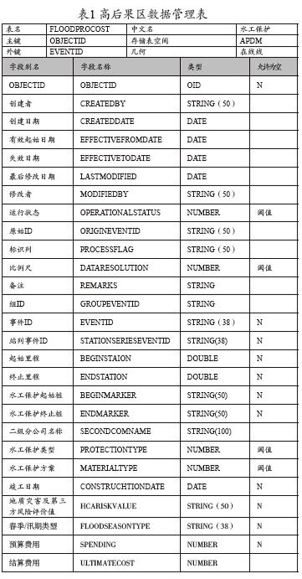 為實(shí)現水工數據的管理與分析,根據專(zhuān)項分析需求,建立水工保護專(zhuān)項要素表和水工保護現場(chǎng)照片索引表。