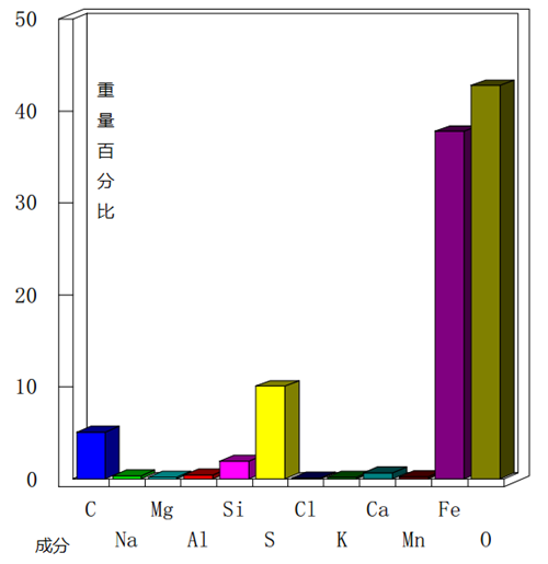 無(wú)機物組分:無(wú)機物主要成分為碳酸亞鐵(FeCO3)39%,鐵的硫化物( Fe3S4 )60%,并含有少量的地層砂1%。