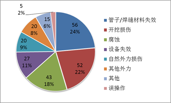 圖7 美國油氣管道開(kāi)挖損傷導致失效情況