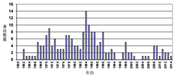 圖19 UKOPA歷年管道失效數量(1962-2014年)