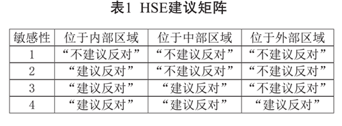 基于不同的敏感性水平和開(kāi)發(fā)方案所處的區域,HSE的建議矩陣見(jiàn)表1。