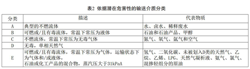 5.2 節規定應將輸送介質(zhì)按照表2進(jìn)行分類(lèi)。