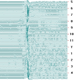 目前,國內大口徑長(cháng)輸管道干線(xiàn)基本采用螺旋焊縫埋弧焊管道,經(jīng)內檢測后可以清晰地看到螺旋焊縫和環(huán)焊縫信號(圖1)。內檢測缺陷定位時(shí),通常先開(kāi)挖參考環(huán)焊縫(也就是距離缺陷點(diǎn)最近的上游或者下游的環(huán)焊縫),通過(guò)螺旋焊縫與環(huán)焊縫的交角來(lái)判定開(kāi)挖的參考環(huán)焊縫是否準確,缺陷定位開(kāi)挖較方便。