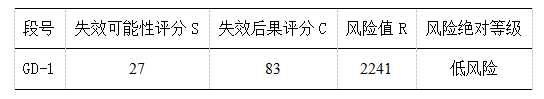 根據前文提出的改線(xiàn)管段風(fēng)險評估方法,改線(xiàn)管段GD-1的失效后果評分如表3所示。