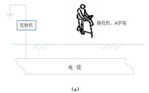 (2)將A字架與接收機相連,檢查并調試接收機與發(fā)射機頻率一致,在接地附近插入A字架,檢查接收機顯示是否正常,檢查確定工作狀態(tài)良好。