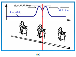 (4)目標電纜測試,可以根據電流指示方向確定。若是目標電纜,箭頭指示為電流來(lái)的方向即指向發(fā)射機方向,反之箭頭指示將背向發(fā)射機。存在干擾區域,可以使用此方法進(jìn)行驗證。