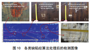 (5)簇狀狹縫形缺陷(最大深度為3.0 mm)。