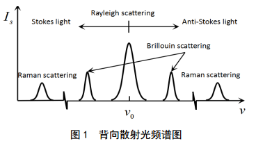 激光入射到光纖中,會(huì )產(chǎn)生各種光散射,包括彈性散射和非彈性散射。光纖中的光散射主要包括瑞利散射(Rayleigh Scattering),拉曼散射(RamanScattering)和布里淵散射(Brillouin Scattering),圖1為背向散射光頻譜圖。其中瑞利散射光是入射光與物質(zhì)發(fā)生的彈性散射,散射光頻率不發(fā)生變化,拉曼散射光和布里淵散射光是入射光與物質(zhì)發(fā)生非彈性散射,散射光頻率發(fā)生變化。實(shí)驗采用C-OTDR技術(shù)探測光纖中的瑞利散射。