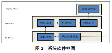 系統軟件分為三層,第一層為儀表層,主要功能為采集信號的原始數據和原始數據處理;第二層為算法層,主要接收第一層軟件傳輸過(guò)來(lái)的數據,對數據進(jìn)行分析處理,提取信號特征,對數據進(jìn)行模式識別驗證,并將模式識別結果傳遞到第三層;第三層接收第二層軟件傳遞過(guò)來(lái)的數據處理結果,結合地理信息將處理結果展示并進(jìn)行報警提示(圖3)。