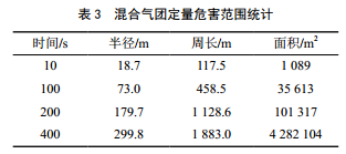 不同時(shí)間點(diǎn)混合氣團定量危害范圍如表 3所示。