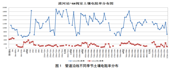 土壤電阻率的變化不僅可以改變陰極保護電流分布,同時(shí)對陰極保護評級準則也有影響(ISO、 GB/T 21447―2008和GB/T 21448―2008有相應說(shuō)明)。因此要根據其變化來(lái)調整陰保站的輸出,根據評級準則進(jìn)行陰極保護評價(jià)與管理。