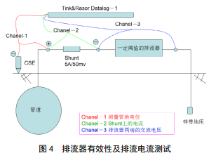 以直流排流器為例,需要檢測的內容有管道直流電位、排流電流、交流電壓、排流地床接地電阻等。測試接線(xiàn)如圖 4所示。