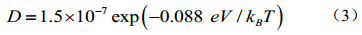 由圖 4可知,拉應力情況下氫原子移動(dòng)快,溫度越高,氫原子擴散率越大,并且基體內的氫濃度越高。因此,氫原子擴散系數D可以擬合為: