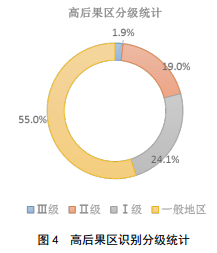 2 0 1 8年,公司通過(guò)智能識別系統,開(kāi)展了1 385 km管道的高后果區識別工作,共識別出高后果區617段,里程為622.3 km,其中Ⅲ級26.3 km,占比1.9%;Ⅱ級262.8 km,占比19.0%;Ⅰ級333.2 km,占比24.1%(圖 4)。