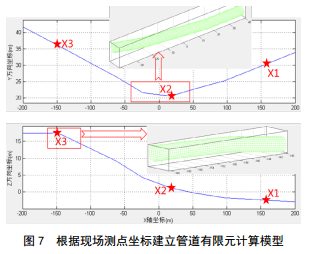 如圖 5所示,管道存在多處冷彎管(下文簡(jiǎn)稱(chēng)彎管),對管道在滑坡作用下的位移、應力和應變響應有很大影響,因此,在進(jìn)行管道本體應變監測[1]、管道位置測量和力學(xué)計算時(shí),均應充分重視彎管鄰近段管道[2]。