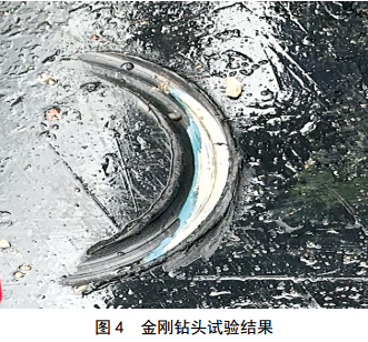 金剛鉆頭、 XY-1 型鉆機在管道上方分別以自重(60~70 kg)和液壓(3 t)兩種形式鉆孔。試驗結果: