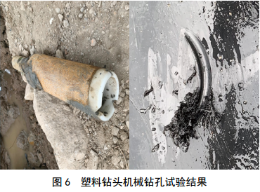 塑 料 鉆 頭 、 X Y- 1 型 鉆 機 在 管 道 上 方 以 自 重(60~70 kg)和液壓(3 t)兩種形式鉆孔。試驗結果: