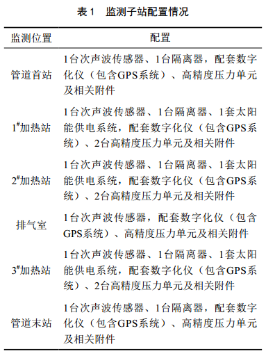 在某油田輸油管道(中間設置加熱站3座)安裝一套S-image次聲波管道泄漏監測系統,由中心主站、監測子站兩部分組成,五個(gè)監測子站即管道首站-1#加熱站-2#加熱站-55公里處排氣室-3#加熱站-管道末站。布站設置系統架構見(jiàn)圖 2。