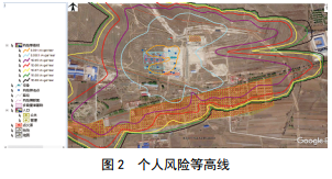利用風(fēng)險模式運算生成個(gè)人風(fēng)險等高線(xiàn),見(jiàn)圖 2。