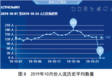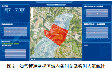 系統利用采集的數據可以提取相關(guān)特征建立專(zhuān)題數據庫,統計分析出年、月、日、時(shí)、分任意時(shí)段內的監視區域內的人員流量歷史平均數據、人員特征畫(huà)像歷史平均數據,同時(shí)利用這些歷史數據,預測分析是否有施工隊進(jìn)駐油氣管道監視周界內,并作出預警提示。圖7、圖8為某成品油管線(xiàn)某高后果區歷史人流統計。