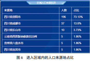 利用LBS位置大數據可以刻畫(huà)出監視區域內的人群特征、行為偏好、來(lái)源地等信息,提供人群年齡分布、性別比例、個(gè)人喜好、來(lái)自哪里等人群特征,為油氣管道突發(fā)事件的應急處置與輔助決策提供參考。圖5、圖6所示為L(cháng)BS位置大數據監測預警系統展示蘭成渝成品油管線(xiàn)某高后果區的人群畫(huà)像。