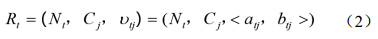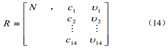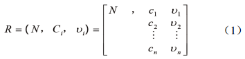 假設物N 具有n 個(gè)特征,即C1, C2,…, Cn,則物N關(guān)于特征Ci對應的量值υi可構成n維物元R,表示如下: