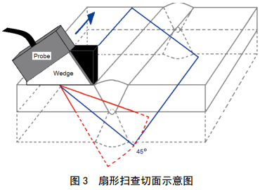 (3)檢測中不需要進(jìn)行鋸齒等多維掃查,僅需要 一維掃查即可對焊縫進(jìn)行全面檢測,檢測效率高[4]。