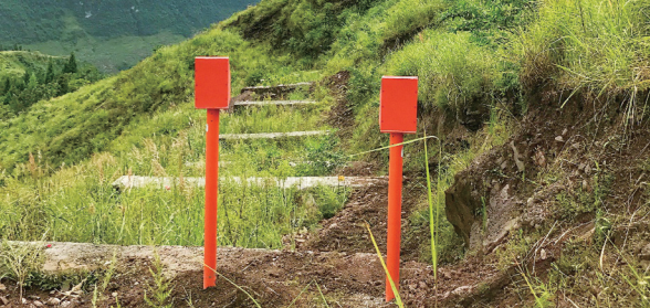 對于管道災害規模較大、災害變形特征不明顯、對管道的影響難以確定的災害點(diǎn),通過(guò)安裝在管道上的應變傳感器,監測特定部位管道應變,佐證地質(zhì)災害對管道的影響程度。