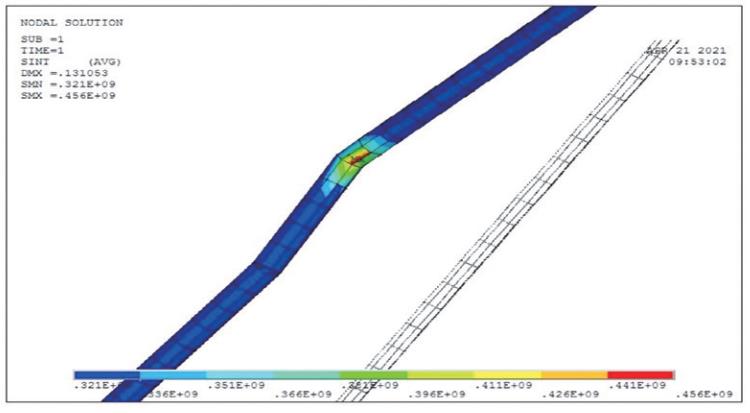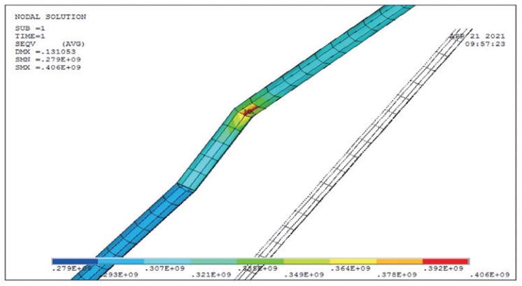 (2)管道同一位置的第三強度當量應力值稍大于第四強度當量應力值。