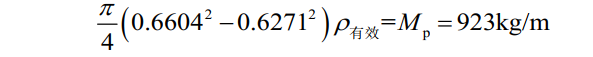 計算得r=627.1 mm,δ=(660.4-627.1)/2 =16.7 mm。簡(jiǎn)化后單層管的有效密度為ρ有效,簡(jiǎn)化前后管道單位長(cháng)度質(zhì)量不變,則: