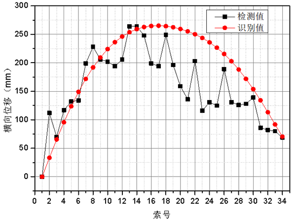 圖 4 主梁橫向偏位檢測值與識別值對比