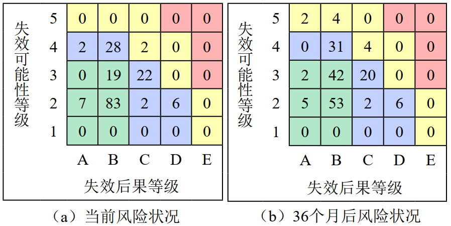 根據需求采用定性或定量風(fēng)險評價(jià)方法確定設備風(fēng)險值,參考GB/T 26610―2014《承壓設備系統基于風(fēng)險的檢驗實(shí)施導則》中失效可能性定量分析方法和失效后果定量分析方法評估設備風(fēng)險可接受性。全部設備單元的風(fēng)險評價(jià)結果進(jìn)行等級劃分后以風(fēng)險矩陣展示,如圖 3所示。