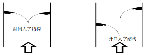 對于小港灣、中小河流,可采用圍油欄人字布放結構。它的最大有效水流速度為2節,具有布放速度快的優(yōu)點(diǎn)。圍油欄和水流的角度必須滿(mǎn)足水流和圍油欄之間的相對速度大于0.7節。圍油欄人字結構有封閉式和開(kāi)口式兩種(圖 4)。