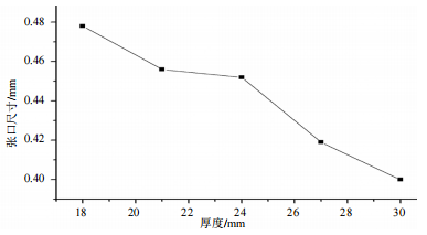 圖 4 卡具殼體環(huán)形厚度和張口尺寸的關(guān)系