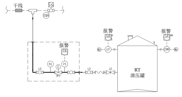 其中,執行機構、壓力變送器、流量開(kāi)關(guān)、液位計應具備SIL2安全等級,而且為提升執行機構供電安全,泄壓閥前遠控球閥納入UPS配電,并設置邏輯鎖開(kāi),閥門(mén)一旦離開(kāi)全開(kāi)位時(shí)可上傳報警信號。