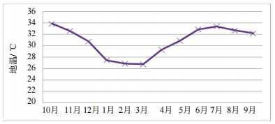 管道所在區域地溫全年維持在26℃以上,其中12月至次年4月溫度偏低,其他月份均在30℃以上,如圖 2所示。