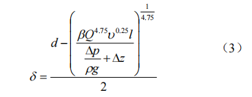 結合管道摩阻,通過(guò)當量直徑反算法確定管道內結蠟層平均厚度,結蠟計算核心公式為: