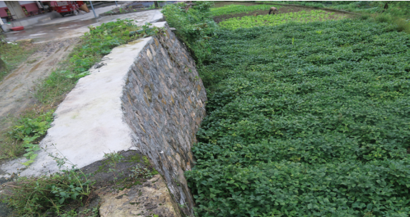 工程治理措施:針對臺田地匯水沖刷或臺坎垮塌,采用漿砌塊石擋墻方式恢復垮塌的臺田地土坎或加固臺田坎,防止管道區域造成匯水沖刷。
