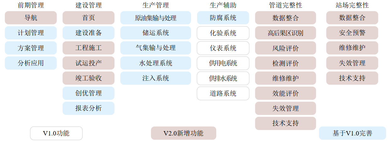 圖 2 采油與地面工程運行管理系統( A5) 2.0版升級功能對比